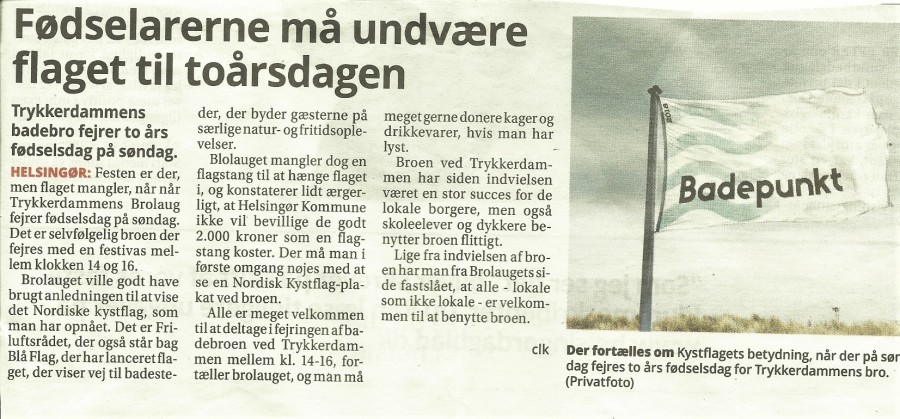 Flaget markerer det rene badevand omkring Helsingør centrum - men kan desværre ikke hejses ved Trykkerdammen, pga. Kommunens fravalg af en flagstang - men der er opsat et skilt - indtil videre.