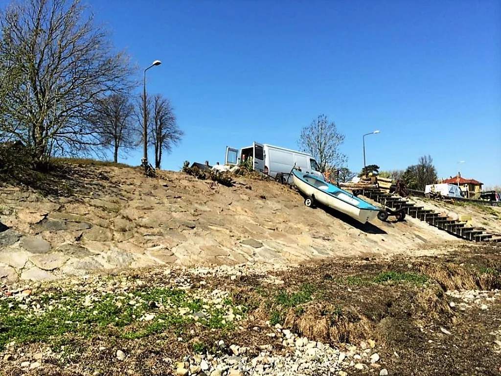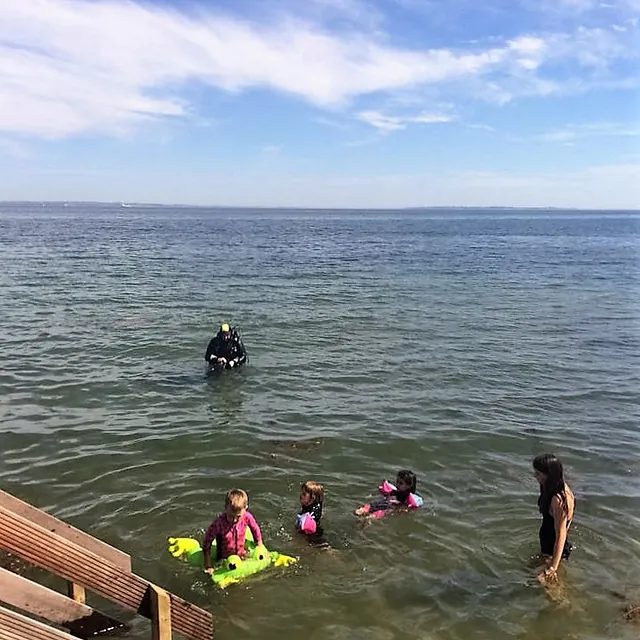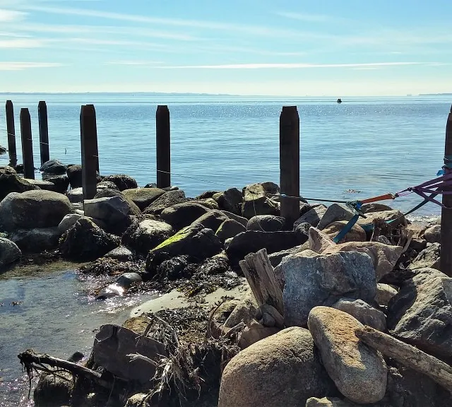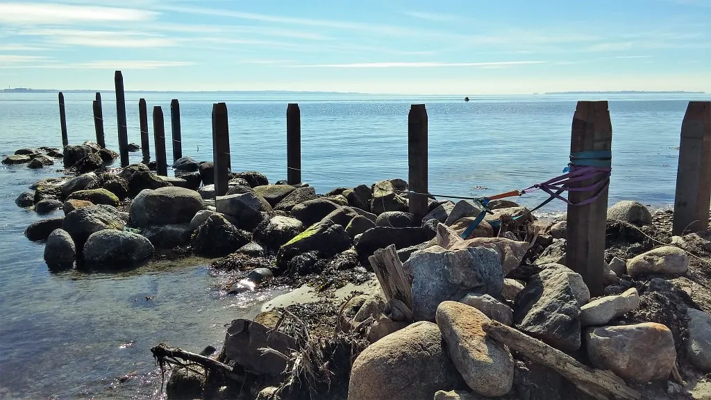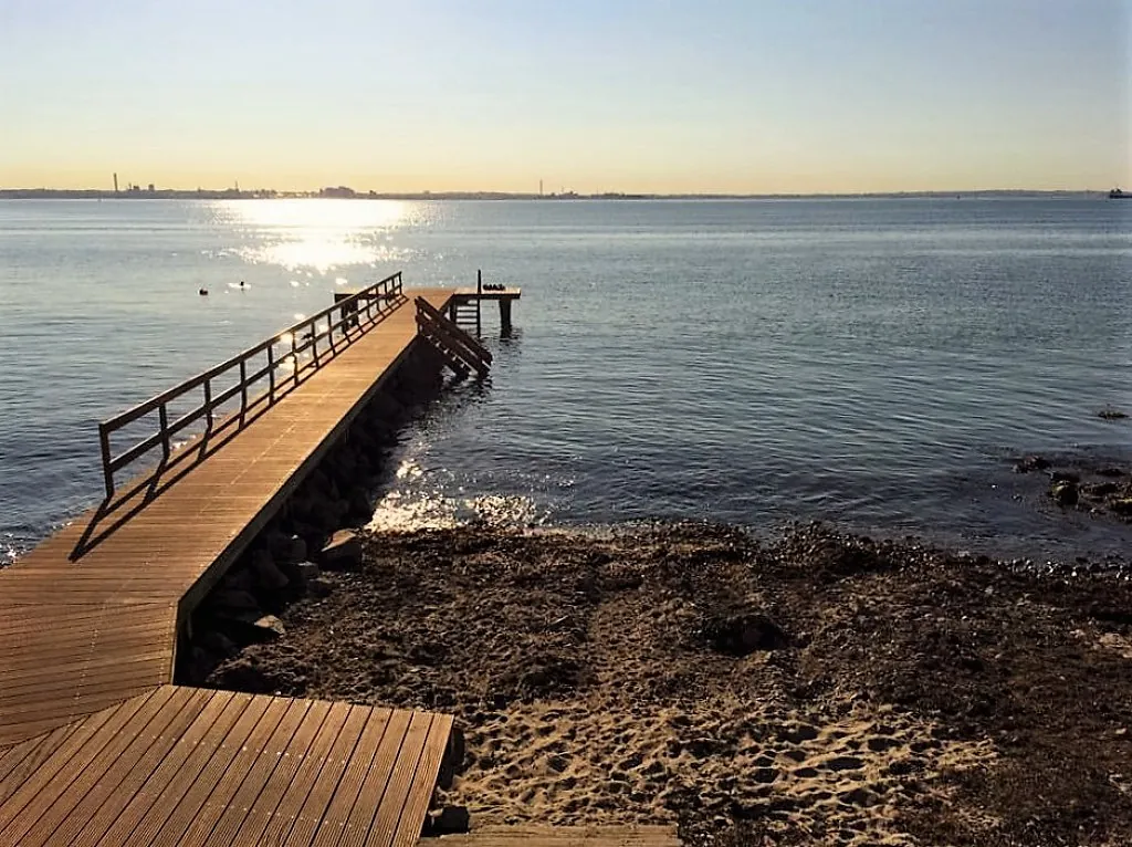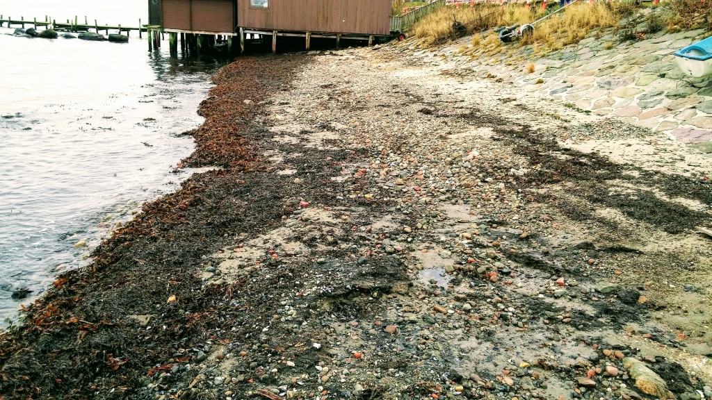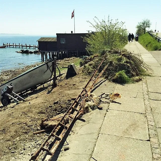 13. maj 2016 - prammene er sejlet og broen ligger fri. Der er ved at være ryddet op på stranden - sommeren venter.