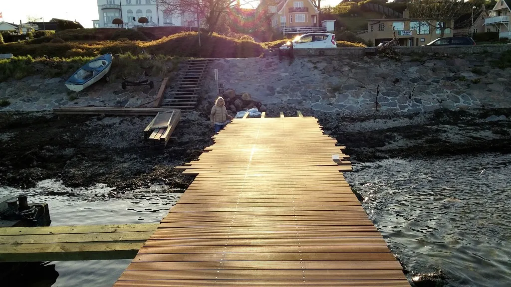 10. maj - Broen er "færdig" - der stadigt et par småting - men ganske pænt håndværk, udført af Kystsikring.dk - nu mangler kun lidt varmt vand:)