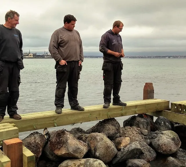 "KYSTSIKRING udfører vedligeholdelse, reparation samt bygning af nye havne- og broanlæg og vi arbejder langs kyster og fjorde i hele Danmark og Sydsverige.